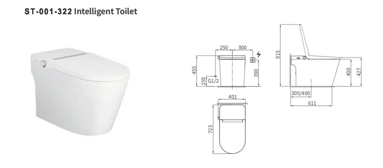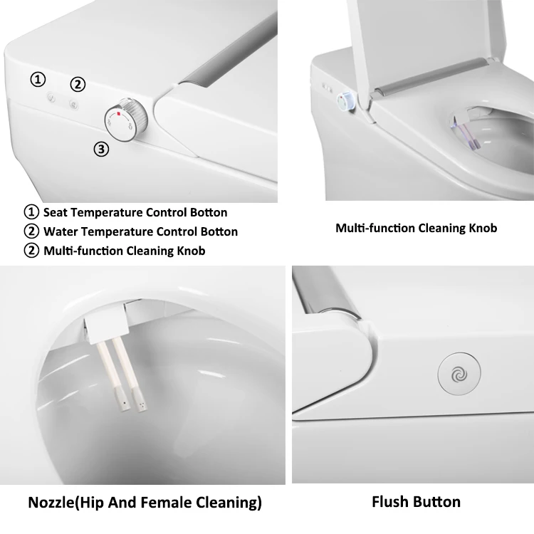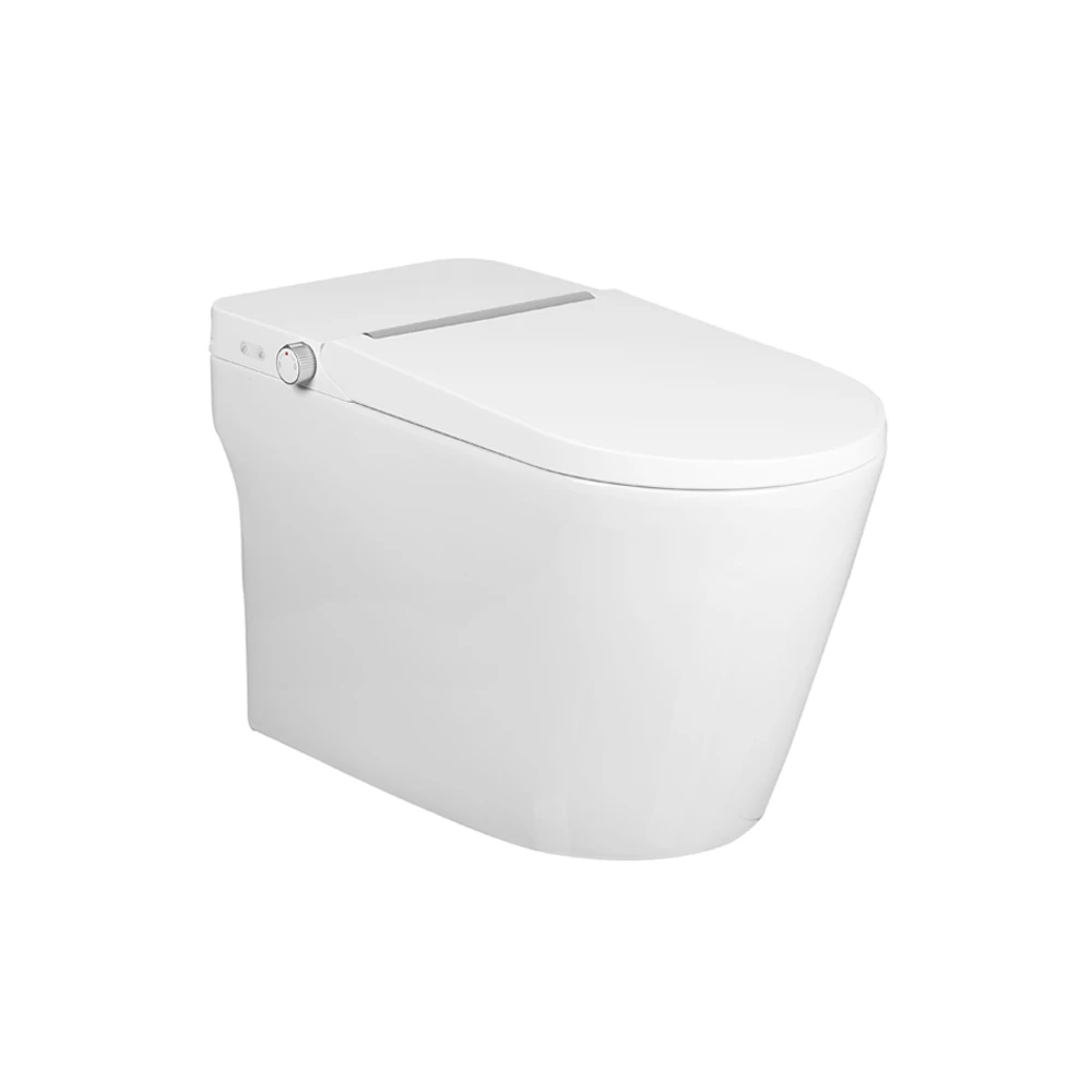 Eitt stykki gólf fest sjálfvirkt skola salerni með heitu lofti þurrkun þráðlausri fjarstýringu Sífonískt greindur snjall salerni